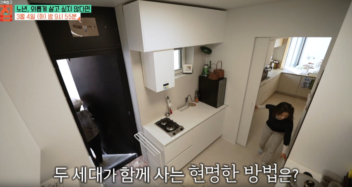 이러한 주거 형태는 시어머니의 제안으로 더욱 정교하게 다듬어졌다. 시어머니는 서로 다른 세대가 함께 생활하는 경우 독립성과 소통의 균형이 중요하다는 점을 강조했고, 이에 따라 부부는 각자의 공간을 확보하면서도 연결되는 부분을 마련하는 방식으로 설계를 수정했다. 그 결과 두 세대를 연결하는 중요한 요소로 보조 주방이 마련되었으며, 이를 통해 자연스럽게 소통이 이루어질 수 있도록 했다.