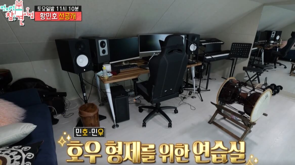 황민호는 방송을 통해 가족들과 함께 사는 4층 집을 최초로 공개하며, 트로트 가수다운 특별한 공간들을 선보였다. 그의 집에는 수많은 행사 의상이 가득한 옷방과 장구 연습실이 마련되어 있어, 트로트에 대한 그의 남다른 열정을 엿볼 수 있었다. 특히, 장구 연습실은 그가 매일같이 연습하는 공간으로, 벽면에는 다양한 공연 사진과 상패들이 빼곡하게 걸려 있어 그의 노력과 성취를 한눈에 보여주었다. 그는 가족들이 모두 잠든 이른 아침에도 남몰래 일어나 연습을 하며 신들린 장구 실력을 뽐내 참견인들의 감탄을 자아냈다.